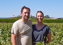 「ぶどうを完熟させるためにはまず、光合成をしっかり行う必要があります。葉の緑素が濃いほど光合成が進むので、このために敢えてビオロジック栽培ではなくリュット・レゾネを選択しています。また、除葉に注力し、一枚一枚の葉にしっかりと日光が当たるようにします。そして、グリーン・ハーヴェストを適切に実施して収量を制限します。収穫は、村で最も遅く開始する数人のうちのひとりです。次に醸造については、原則としてバトナージュをしないことによって十分な酸とミネラルが残ります。樽熟成期間も非常に重要ですが、固定観念を排し、私が美味しいと思った時にビン詰めします」。